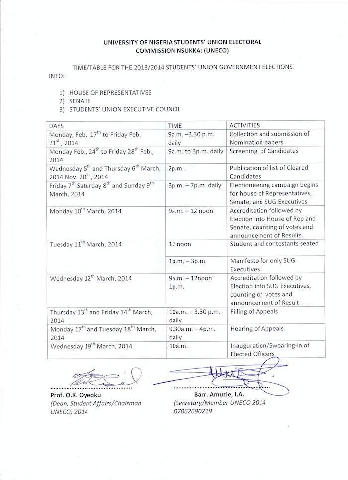 UNIVERSITY OF NIGERIA STUDENTS’ UNION ELECTORAL COMMISSION NSUKKA (UNECO)